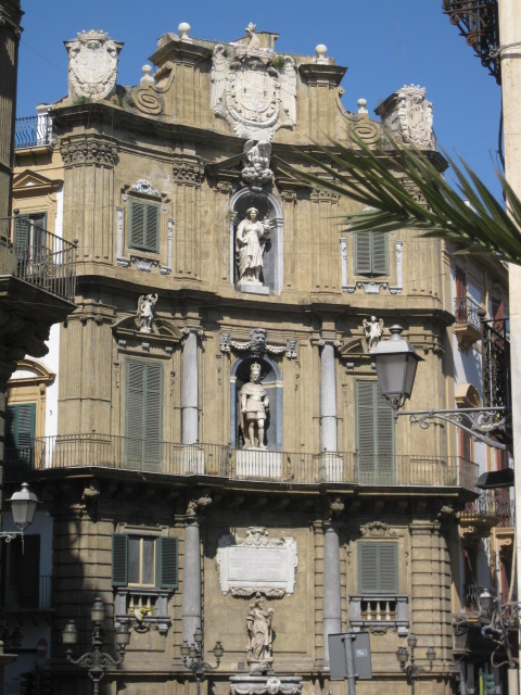 パレルモでも一番賑やかな通りが交差したちょうど交差点にあたる所。道幅はあまり広くないし、車と人の往来が激しく、騒然としているので、すばらしい彫刻が施されているが、ちょっと落ち着いてゆっくり見たりできる雰囲気ではなく、あわてて写真を撮りました。