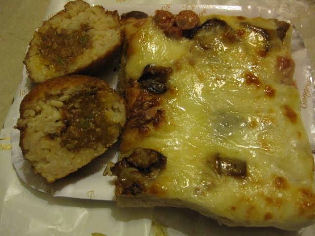 持ち帰りで、ピザ€2、アランチーニ€1.4 超安- 旅行時期