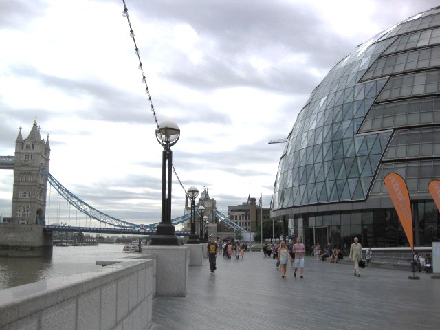 北にセントポール大聖堂、南にグローブ座、テートモダンなどがあり、セントポール大聖堂の南にロンドン市内観光案内所があり、そこから、まっすぐ南に向かうとこの橋に出る。東西南北にいろいろな観光スポットを眺めることができる。
