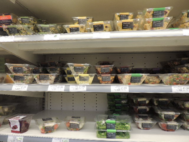 透明のカップに好きな惣菜を入れるスタイルのコーナーSALADA POTがあり、美味しそうなお惣菜を自分の好きな大きさのPOTに少しずつ選んで入れてふたをしてレジに持っていき、精算する。パンでもなんでもお安くお買得。