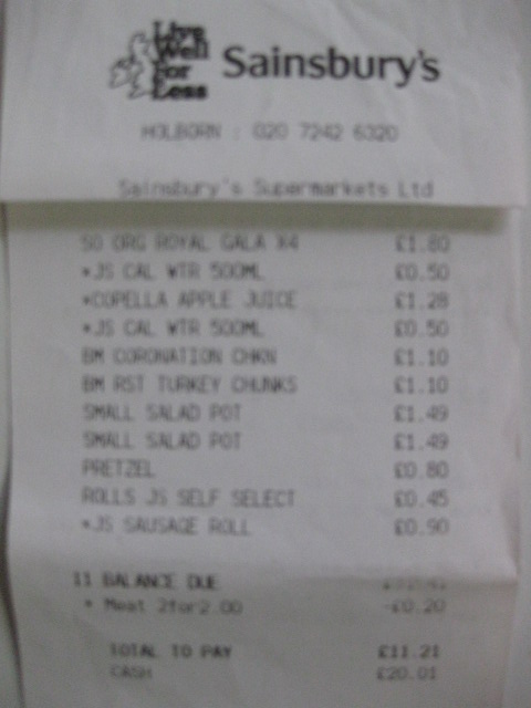 外はトラファルガー広場でまだ明るい喧騒の世界。階段を下り、薄暗い店内でちょっと早めの夕食に利用しました。セルフサービスで、メニューは少ないけどヘルシーでおいしい。おいしい水も自分でとって好きなだけ飲める。