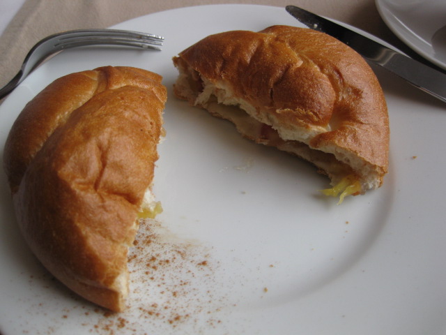 プーシキンのエカテリーナ宮殿の観光の後、ランチに立ち寄りました。日本に留学していた経験のあるガイドさんから“日本のボルシチはトマトで赤くしていることが多いみたいですが、本場のは赤いビーツを使っている。材料も味も全く違う。”と案内されました。