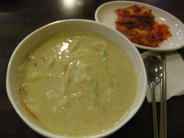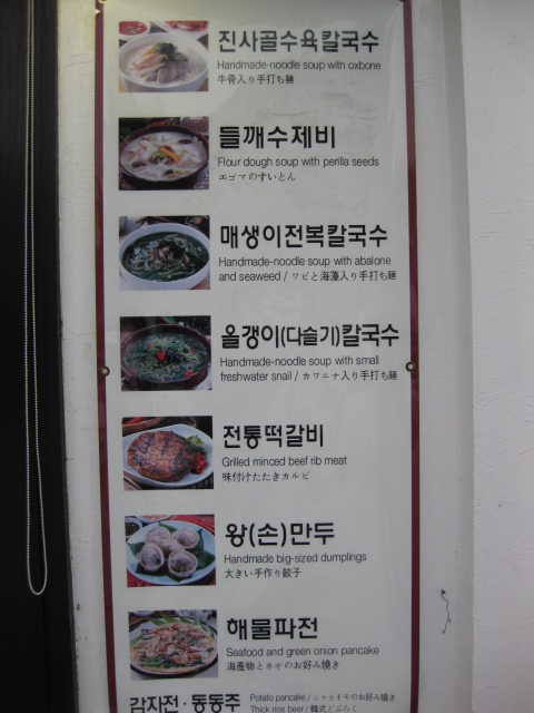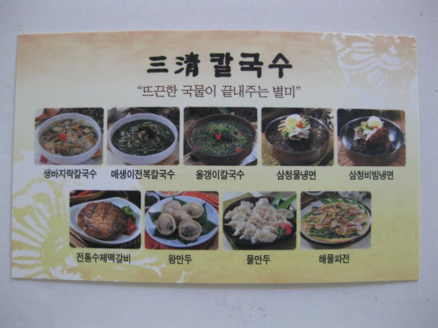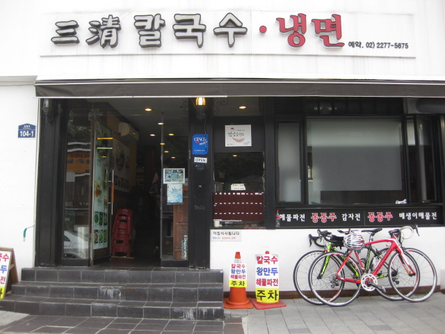 三清洞の青瓦台の近く。えごまが大好きなので、有名なすいとんを注文。一緒についてきたキムチ。今までソウルでいろいろ食べた中で、私には一番おいしく、何倍もオカワリして朝からお腹一杯になりました。日本語は全く通じません。