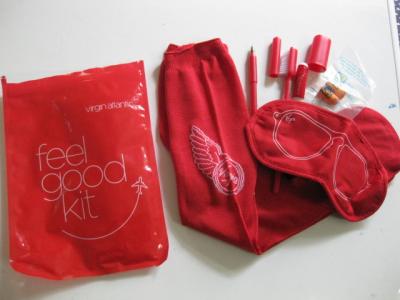 CAのユニフォーム、アメニティーグッズ、毛布もすべて赤。なので私は使いませんでしたが、降りるときに洋服が赤い毛だらけの方を数多く見かけました。帰りの空港には日本人スタッフがいて、親切にお手伝いしてくれて個人のチェックインも安心でした。