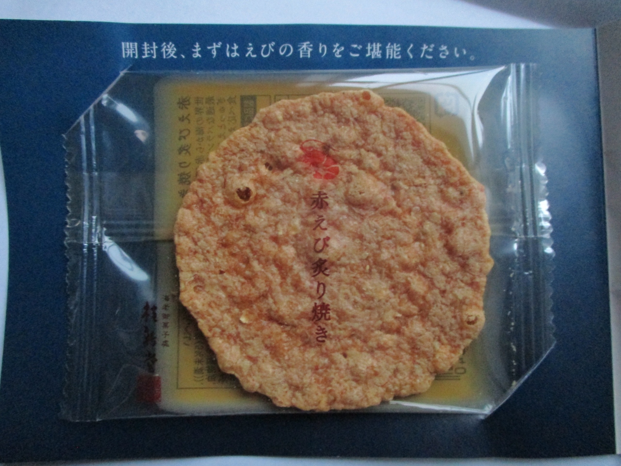 新宿伊勢丹の食品フロアを回っていたら、海老煎餅の新商品をいただき、足を止めました。「赤えび炙り焼き」という新商品でした。袋を開けると、えびの香りが楽しめました。よくよく見ると本店は、名古屋の熱田神宮の近くでした。