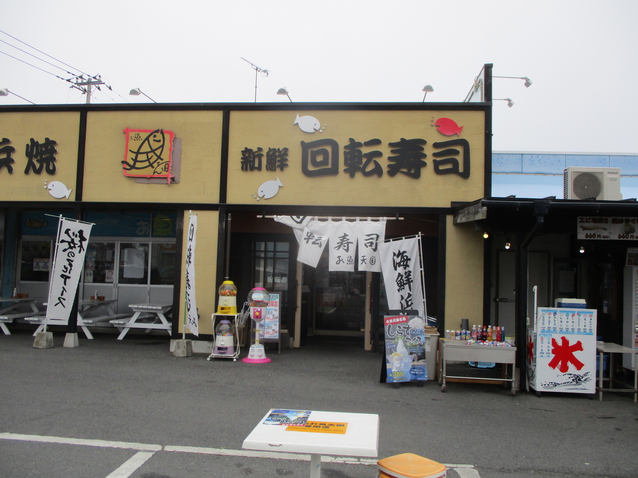 大洗で、「お魚天国海鮮食事処」、「新鮮回転寿司」、「お魚天国大洗浜っこ食堂」の3店舗を経営しているそうです。私は「かあちゃんの店」の向かいの回転寿司お魚天国に立ち寄りましたが、支払いは現金のみでした。
