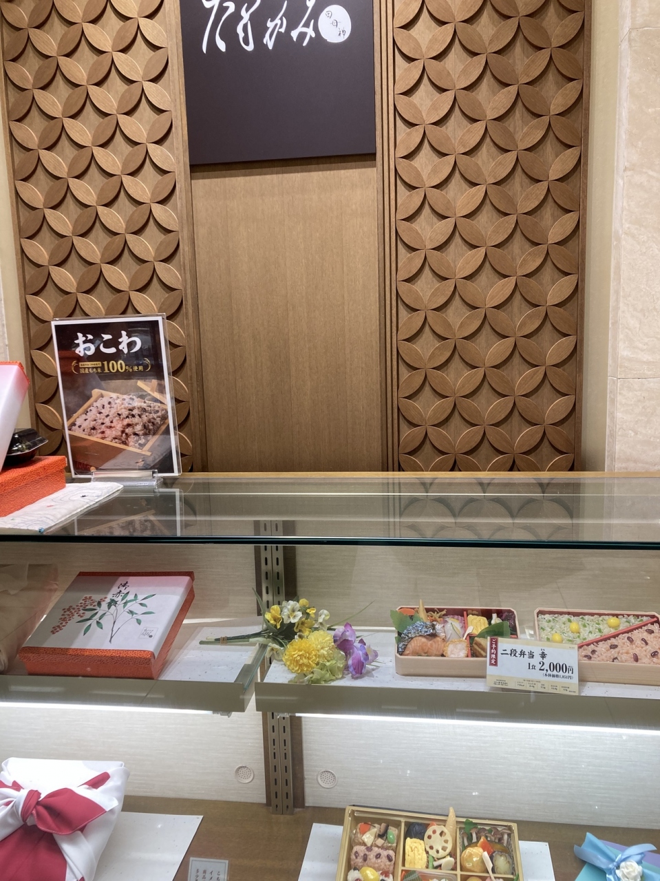 日本橋三越の本館の地下を歩いていて、たまたま見つけました。おこわが入ったお弁当が特徴で、種類は色々ありました。デパ地下やショッピングモールでよく見かけるおこわの「たごさく」と同系列のお店のようでした。