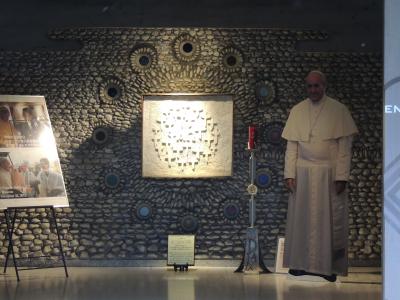 二十六聖人記念碑の裏にありました。この地はカトリック教徒の公式巡礼地と定められていて、1981年にはパウロ2世が、2019年にはサンフランシスコが訪問していました。建物の壁もガウディを思い浮かべるようでした。