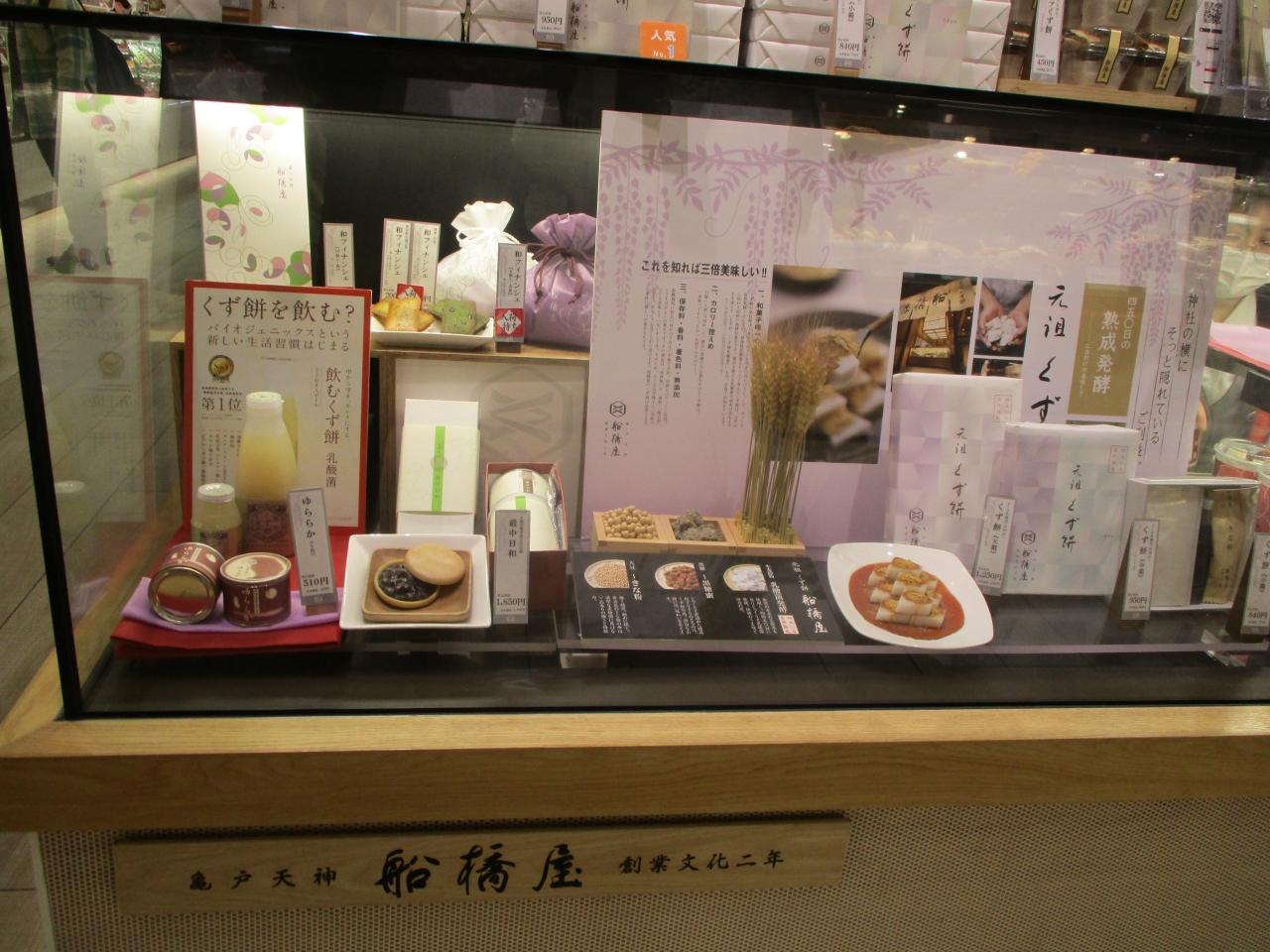 本店は亀戸天神にあって、江戸時代からずっと変わらない製法で作られているくず餅やさんでした。そのくず餅は450日もかけて乳酸発酵をして作られているということで知られていますが、その食感がたまらず、立ち寄りました。