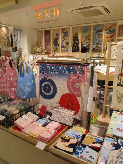 沢山の種類の綺麗な手拭いが並んでいました。グッドデザイン賞を受賞しているそうです。東京駅で見かけたのですが、日暮里駅の中にもありました。こちらが1号店のようです。日暮里らしいデザインもあったりして、楽しめました。