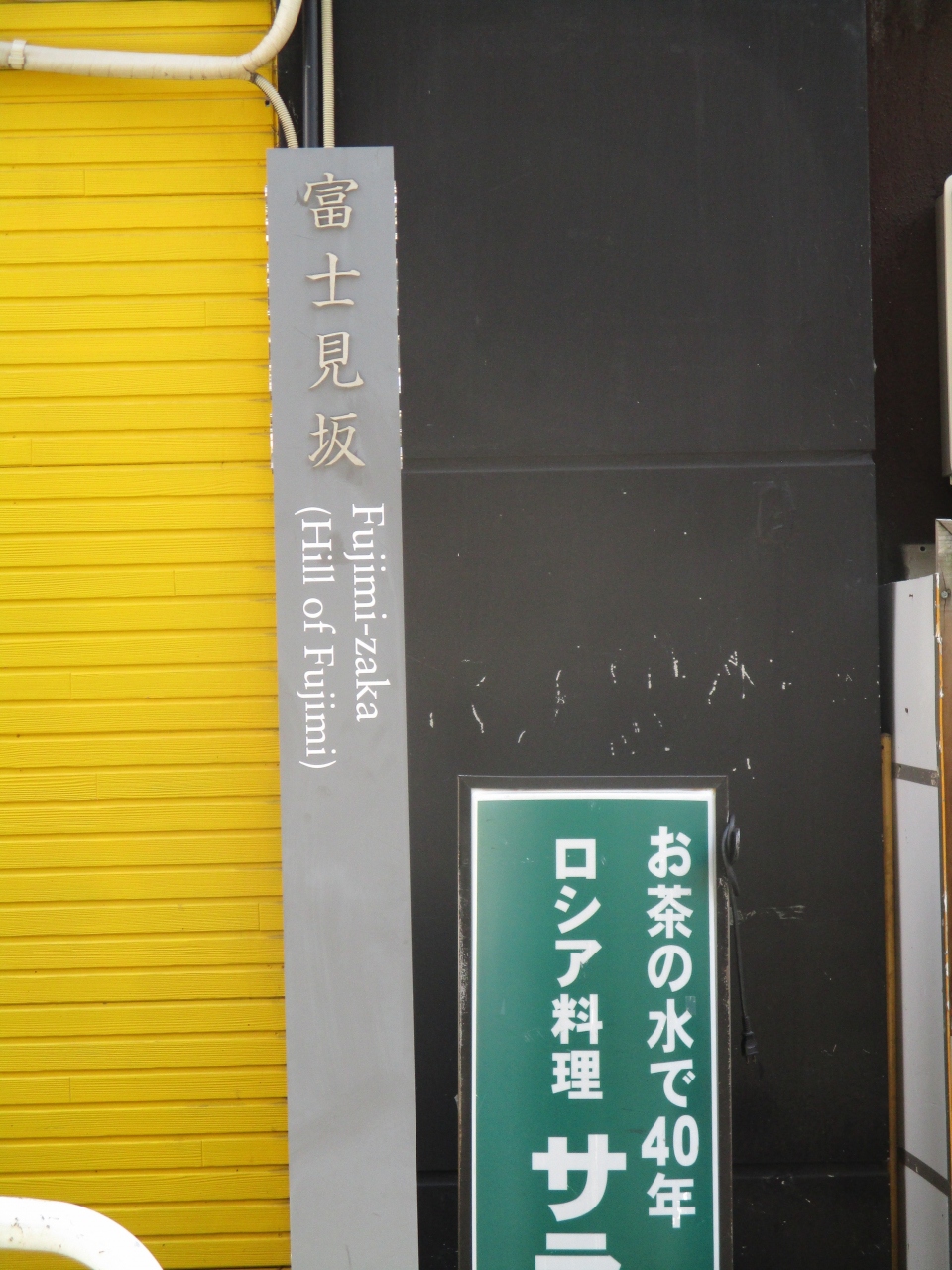 JR御茶ノ水駅から明大などを通り過ぎて、駿河台下辺りを歩いていて、カレーの有名店エチオピアの近くに標識があるのを見つけました。昔はきっとここから富士山が見えたのだろうと思って、周辺を見回しましたが、富士山は全く見えませんでした。