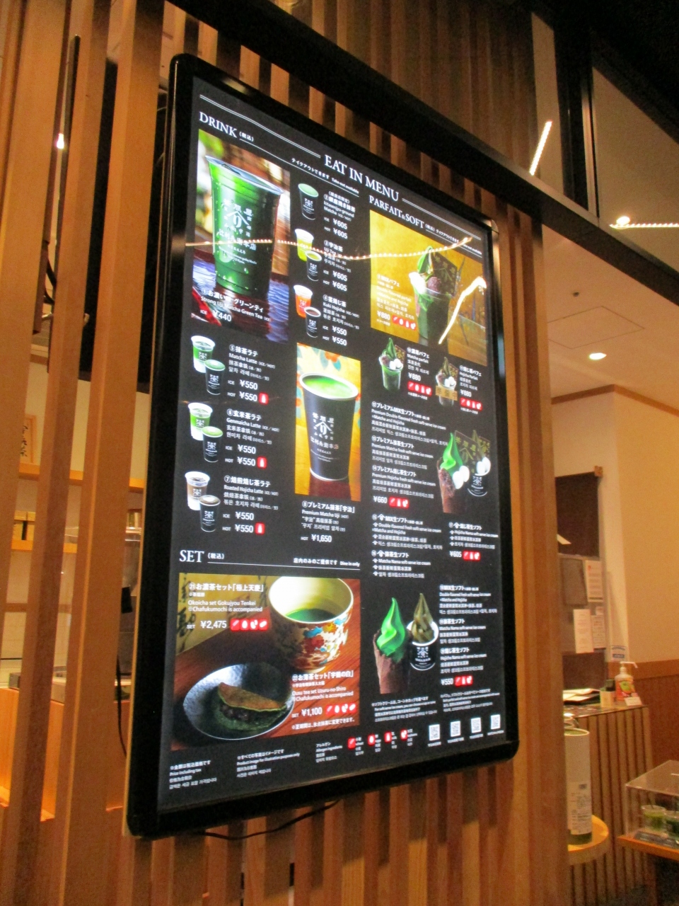 初めて東急プラザの地下2階に行ってみたのですが、あの宇治の辻利兵衛のお店がありました。イートインスペースはありますが、席数はわずかでした。なんといっても抹茶ソフトが濃くて美味しかったです。ラテやパフェもありました。
