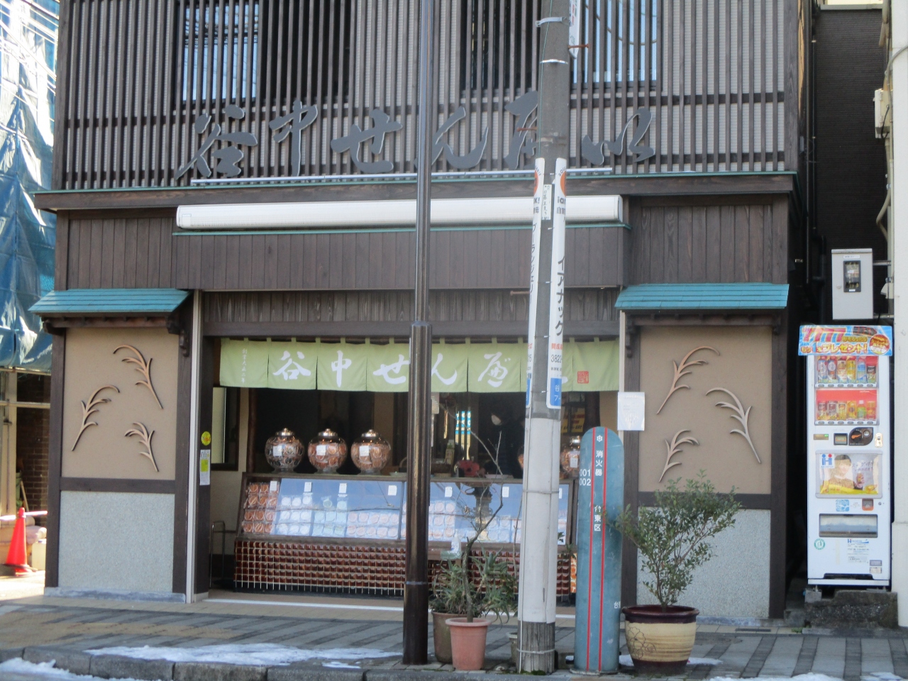 日暮里駅から谷中銀座へ行く途中に立ち寄りました。創業1913年の老舗の煎餅やさんだそうです。1枚1枚丁寧に焼き上げた手焼きの風味の豊かな煎餅が店頭に並んでいました。醤油もザラメも海苔もと手が伸びました。