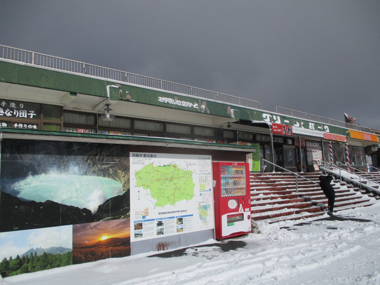 時間調整もあり午前中の空いた時間を利用して、阿蘇駅から草千里までバスで往復し、午後は予定を入れていたのですが、草千里は雪景色で大変寒く、グリーンパークは閉まっていたので、マイカーでやってきた観光客も含め、皆さんがこの店を目指しました。