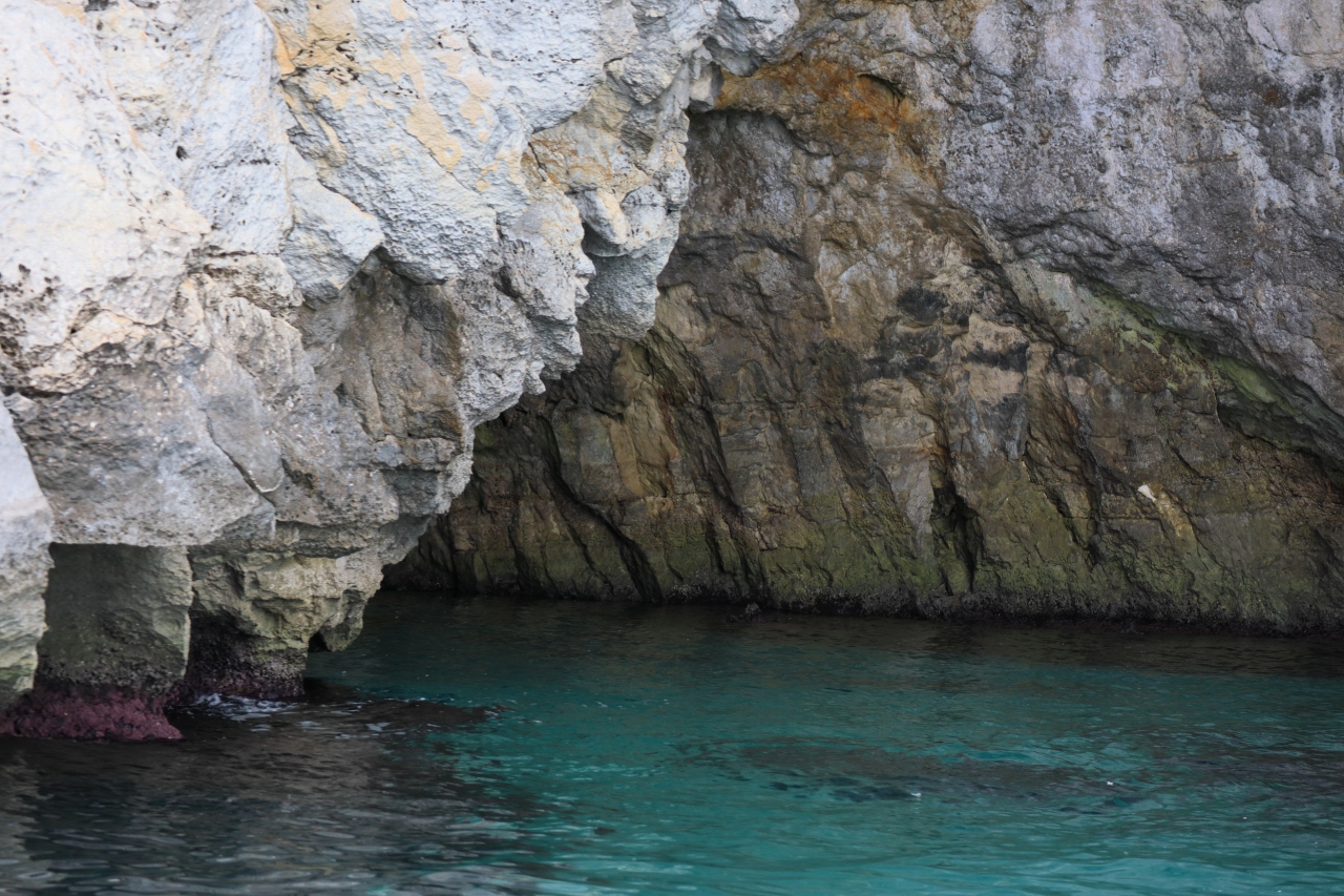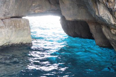 いろいろな洞窟の中へ入って、さまざまな海の青さを満喫することができます。