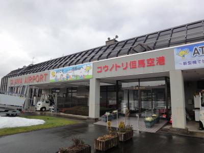 兵庫県北部の丘陵地を切り開いて造られた空港。定期便は、日本エアコミューターが伊丹空港のとの間を、朝夕2往復(35分もフライト)しているのみです。