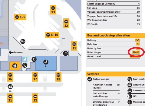 ただ、ヒースロー空港HPからターミナル3のMAPをダウンロードしたのですが、表示されているバスチケット窓口はなく、またバス停番号も異なっていました。- 旅行時期