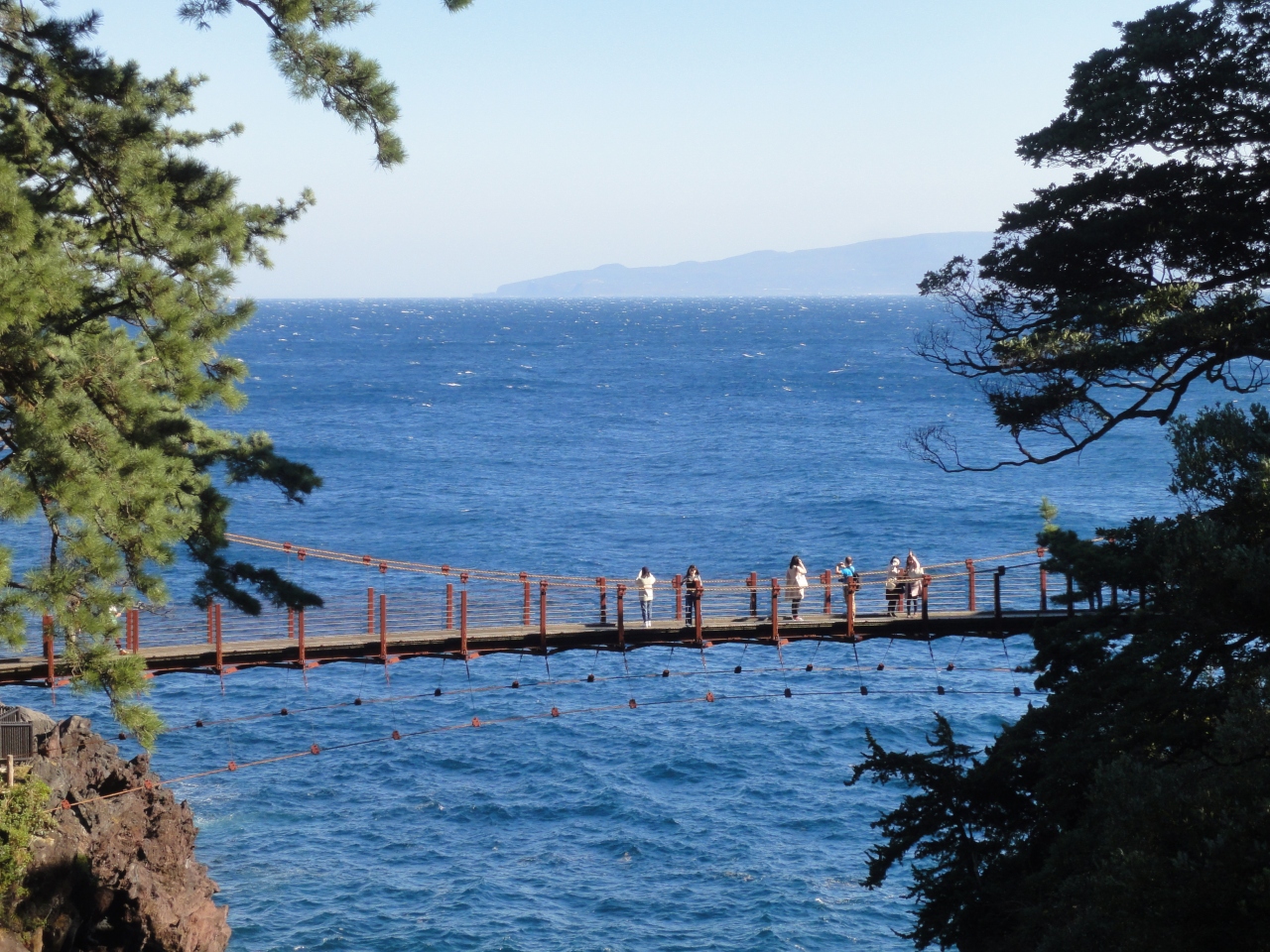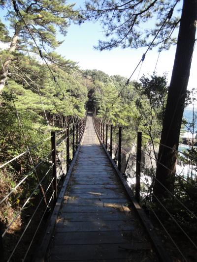 高さ23m、定員100名と規模の大きな吊橋ですが、とにかく観光客が多くて、あまり感動的ではありませんでした。私たちにとっては、その前に行った小ぶりの「橋立吊橋」の方がずっと印象的でした。