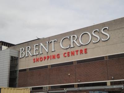 ロンドン中心部から北西に30分ほどのショッピングモール。イオンタウンのようなものです。