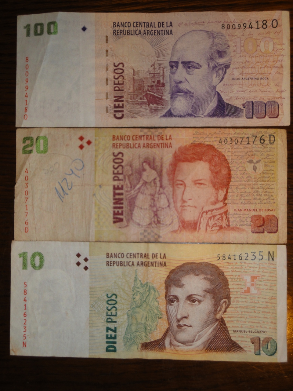 ブラジル側に宿泊で、イグアスの滝アルゼンチン側に行った際、公園の入場券購入にはどうしてもアルゼンチンペソが必要で、唯一の両替屋で(ひどいレートで)両替したのですが、英語も通じないので言われるままにやや多めにペソを買ってしまいました。
