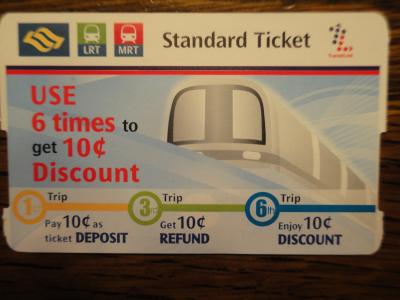 唯一、写真にあるスタンダードチケットは、2回目以降、1枚ずつ次に乗る区間分をチャージするため、複数人いる場合結構手間です。また、チャージする券売機が5ドル紙幣までしか使えず、それも不便です。- 旅行時期