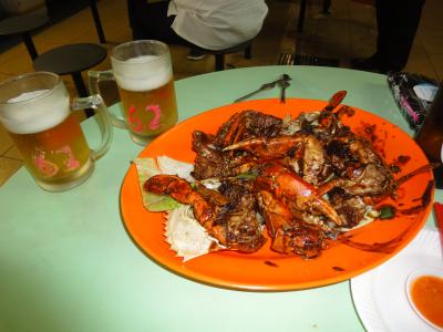 瑪達律焼烤海鮮でペッパークラブを食べましたが、かに二杯でS$66と格安、甘くておいしく、かにだけでお腹一杯になってしまいました。(もちろんチリクラブにもできます。)