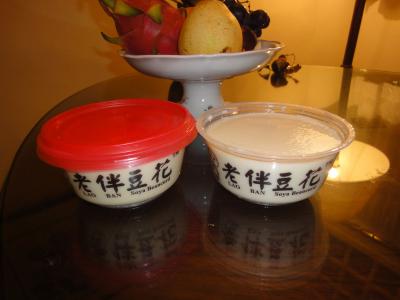 豆乳デザート、オリジナルS$1.5、アーモンド(いわゆる杏仁豆腐みたいなもの)S$2。