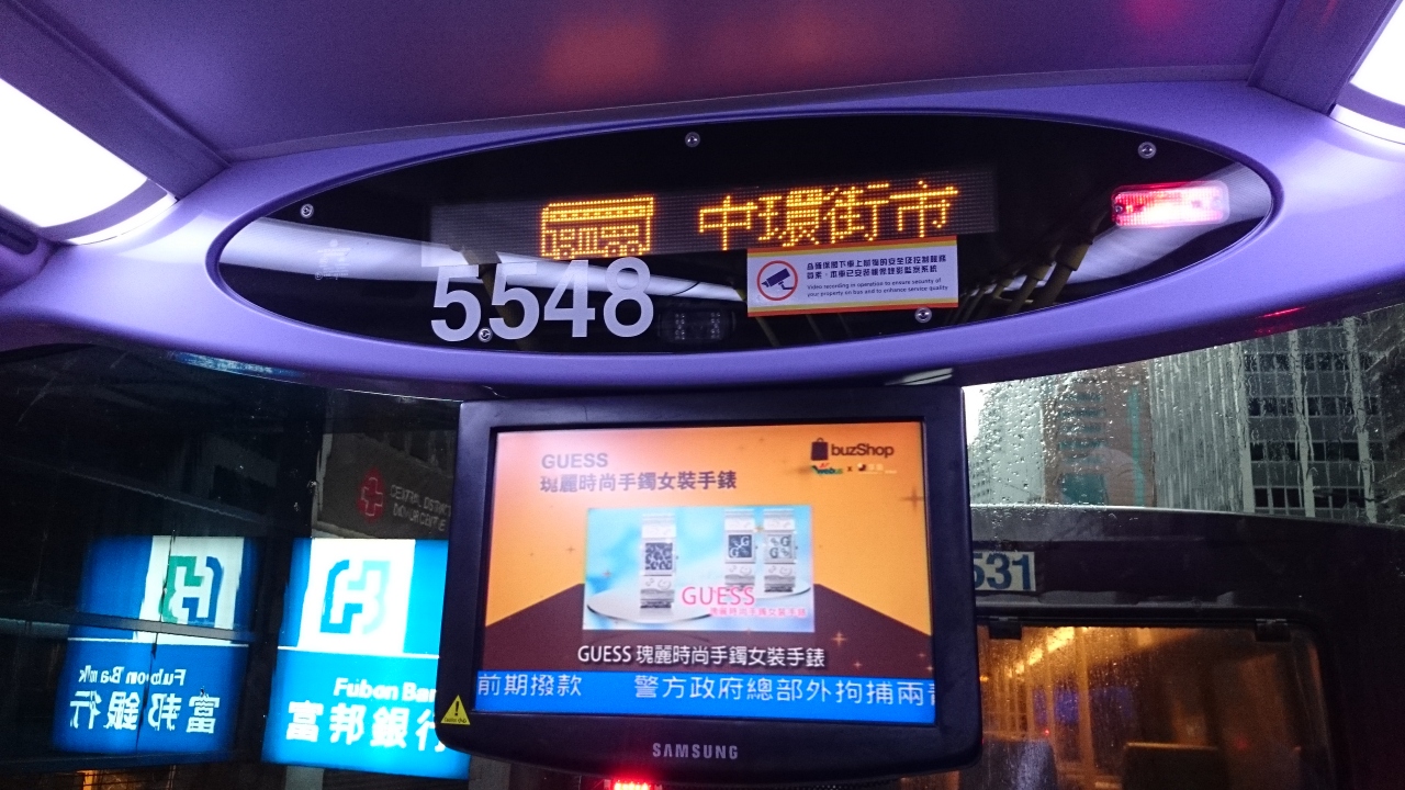 2階建てバスが大半を占める香港です。1回席は勿論、2階席にもLED式の