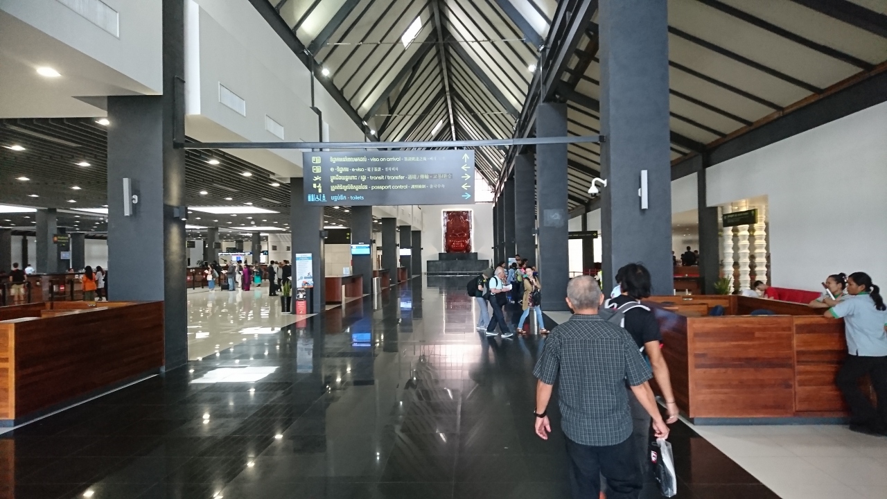ターミナルに入ると、右側がVISAのカウンター、左が入国審査です。私は30USドル払ってVISAを申請しました。申請書は搭乗時に貰いましたが、ここのカウンターにもあります。手順は非常に簡単です。写真(35×45)と申請書、パスポートと30ドルをカウンターで渡すだけ。内容についての質問など一切ありませんでした。その後、5分と待たずに名前を呼ばれてパスポートを受け取り終わりです。幸いにもすいていたためか、15分とかかりませんでした。到着便が重なると混雑しそうです。