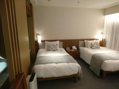 南館の4人一部屋をJTBの朝食無しプランで予約していましたが、新型コロナの影響でその南館が休館。代わりにアサインされた部屋はなんと、本館40階のプレミアグランスイートツインとプレミアグランツインのコネクティングルームでした。バスルームが2つ、トイレが3つもあり、リビングも広々とした合計100平米以上のとても素晴らしい部屋でした。宿泊者が少ないせいかロビーも駐車場はガラガラ。駐車場は1泊1,000円で出し入れ自由でした。