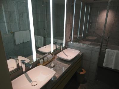 アメニティはロクシタン、無料のコーヒーはインスタントではなくネスプレッソでした。また、無料のミネラルウォーターが一人1本ついていました。さすがにクラブルームは使えませんでしたが、落ち着いた色合いの部屋でゆっくり過ごす事ができました。