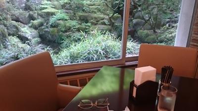 狭いですが、庭と池も見える窓際の席に案内してくれました。