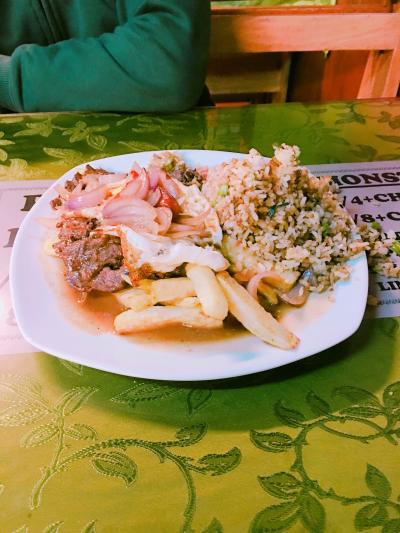 ロモサルタードとチャーハンのセット。普通にうまかった。とりあえずペルー...