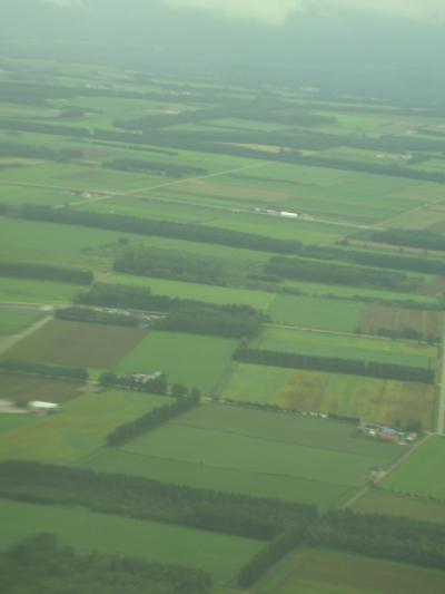 滑走路へ入って行く着陸は、降下中には空港周辺の牧場が見え、着陸間際には周囲に何もない平野と、滑走路に並ぶ北海道の木々が見えるだけの光景が新鮮でした。