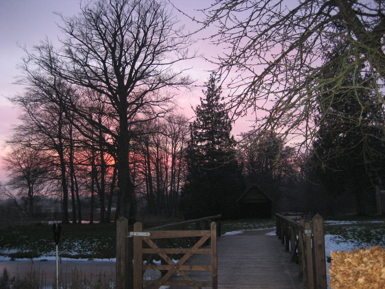 この博物館というか美術館とも呼べそうな塔をゆっくり見学したのち、これまたゆっくりを庭を散策。湖はうっすらと氷を張っていて、なんとも幻想的な光景。
