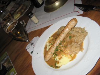 食事は典型的なドイツ料理をいただきました。味は今一つでしたが、この雰囲気は是非味わってほしいです。- 旅行時期