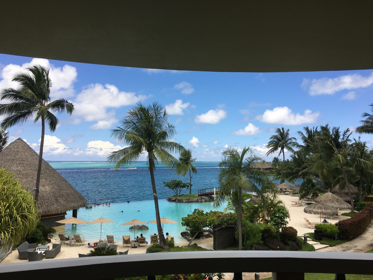 タヒチ島で評判の良さそうなホテルということで選びました。クルーズの前後に一泊づつ泊まりました。最初に泊まった部屋はラグーン向きで素敵な部屋でした。ジャグジー付きの部屋でした。天気も良くて景色もよく最高でした。後の1泊は、早くチェックインしたかったので、それほど部屋にこだわらないで入ったので、シャワーだけの部屋でした。上の部屋の足音が聞こえるほで安普請でした。また、雨季らしい天気になってしまったので最初とは対象的でした。