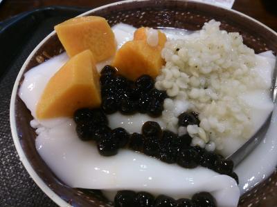 とりあえず台湾スイーツを食べておこうと、何が美味しいお店かも分からずふらっと入ったのが悪かったのか、杏仁の上にタピオカやら芋が乗ったものを選びましたが、杏仁臭がスゴイと言うか…杏仁が口に合わずほぼ残してしまいました。
