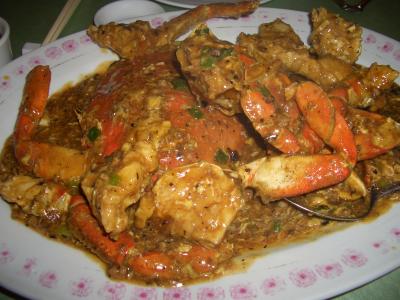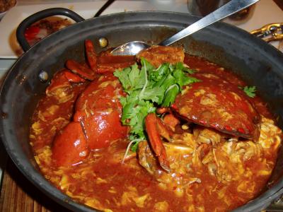ホテルで予約をしてもらい行きました。チリクラブは辛そうな色ですが甘辛です。最初は調子良く食べてましたが、カニの爪の部分を食べたら異状な苦味があり、カニが化学物質でも吸い込んでたのかと色々想像していたら怖くなりましたが、同行者は全く苦い部分には当たらなかったようで謎でした。