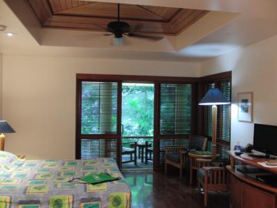 帰りの飛行機が朝早かったので、空港に近くてキレイで安い宿を探して最終日に一泊だけしました。部屋は山沿いに建っており急な階段を登る必要があります。また、レストランやビーチがある所へは車が通る道を渡る必要があり何かと不便な作りのホテルです。