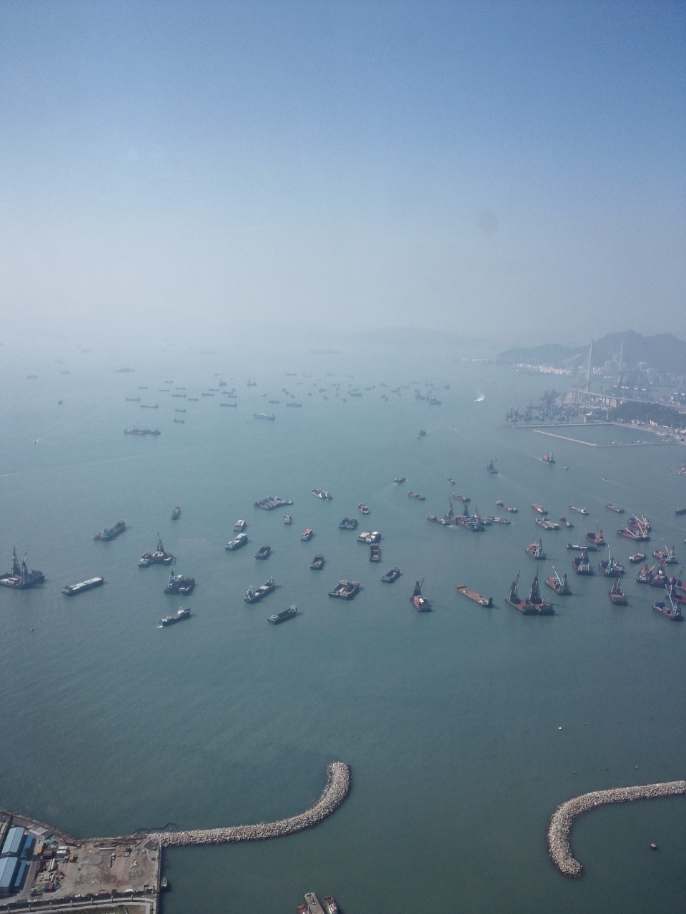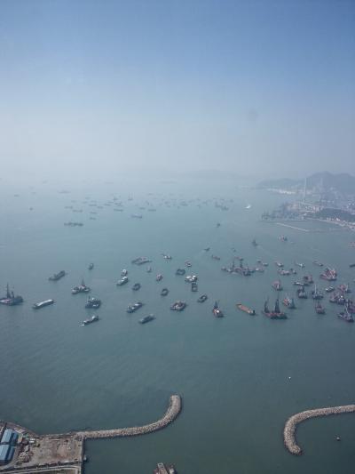 帰りに空港に行くのに時間が空いたので暇つぶしに行きました。ドバイ・台北・上海に続いて世界4位の高さだそうです。入場料も安くない為か、とても空いていて入口も広くとってあるのにガラガラでした。海にたくさんの船がいるのが見えます。