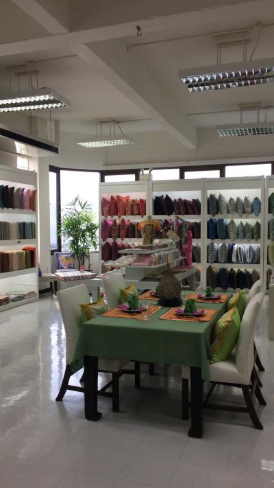 地図で見ると遠い場所にありますが、BTS一本で行けます。バンシャーク駅を降りてソイ93で曲がって徒歩5分ほど。ジムトンプソンがあるとは思えないような場所にありますがアウトレットなのでぼろいビルに入ってます。1〜3階は生地売り場で4−5階に小物類が売ってます。デザインは最新でないものの3−4割引きで買えます。お菓子類もありますが値段は正規店と同じでした。