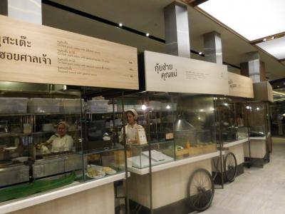 セントラルエンバシーの地下にあるフードコートです。18時に行ったのにガラガラで、逆に人気店が分からず店舗の種類も多いので迷いました。悩んだ挙句選んだトムヤムクンヌードルは辛くて美味しかったです。こちらは入店時にカードをもらって後でレジで精算するタイプなのでクレジットカードも使えました。キレイだし他のフードコートに比べて取り分け高い訳でもないのに空いてるのが不思議でした。