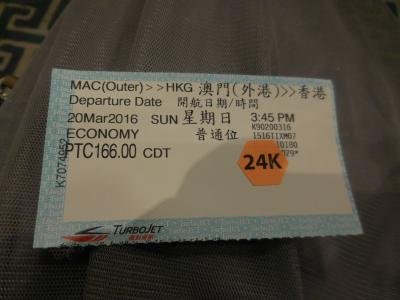 香港⇔マカオの移動に使用しました。酔ったという声をよく聞きますが、私が乗ったときは全く揺れず、むしろ走ってるのも分からないくらいだったので大丈夫でした。座席は指定席になっており、搭乗口に入る前に座席番号のシールが貼られます。窓際の希望はその際に言えば大丈夫です。