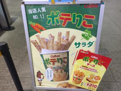 揚げたてのポテリコ(サラダ味)を食べました。ジャガリコのようなカップに入ってますが、ホクホクのポテトフライでとても美味しかったです。チーズ味もありました。普通のお店では売ってないカルビー商品が色々と老いてますが「ポテコタン」というじゃがいもと玉ねぎを使ったお菓子が美味しかった。