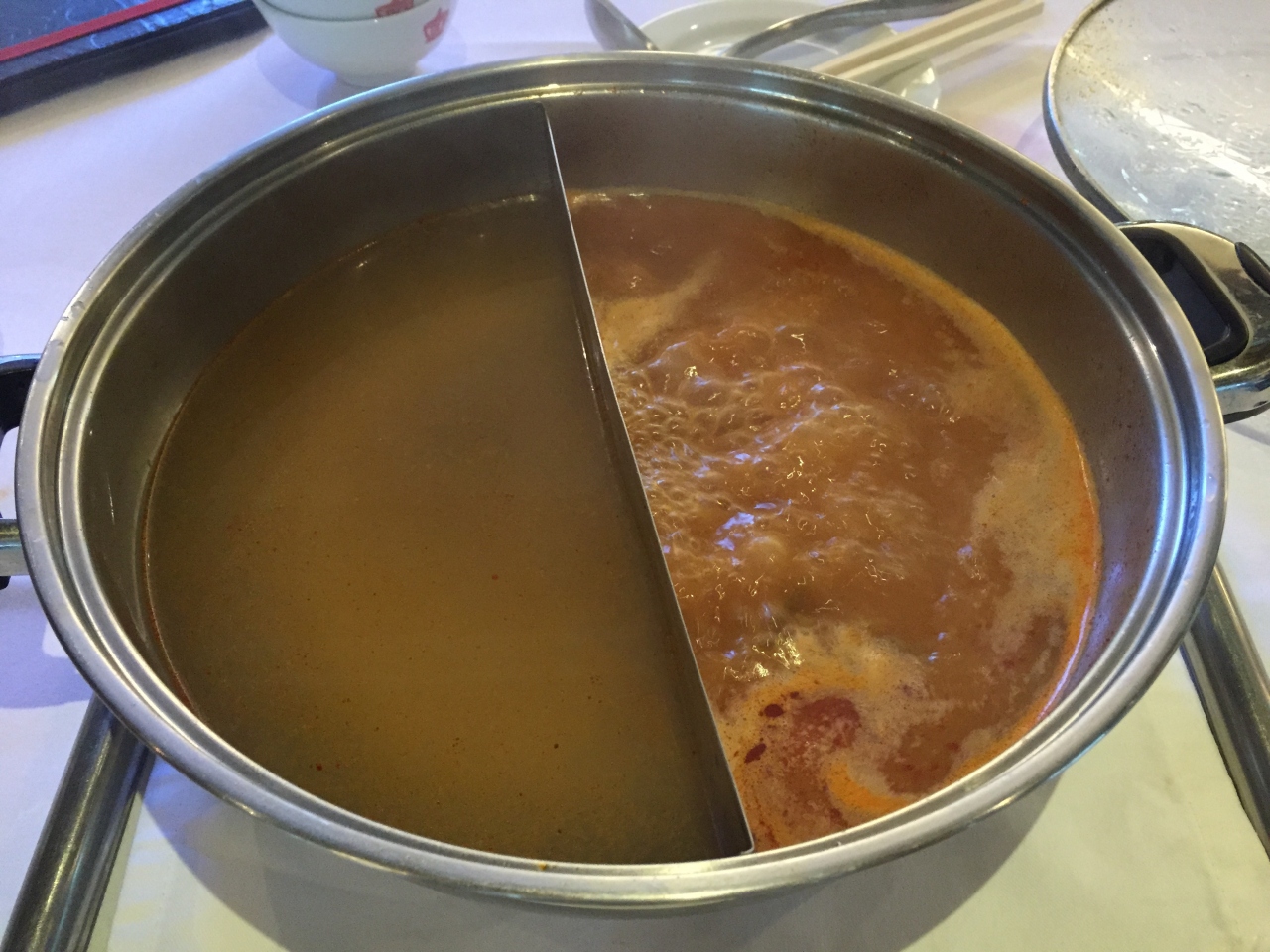 JALパックの市内観光ツアーにタイスキが付いておりランチに行きました。トムヤムクンスープと鶏スープの二色鍋で具材は白菜や豆腐など日本の鍋と同じでした。辛いトムヤムクンと優しい味の鶏スープでちょうど良かったです。最後はスープの方でご飯と卵で鶏雑炊を作って頂きました。日本と同じ味で普通に美味しかったです。