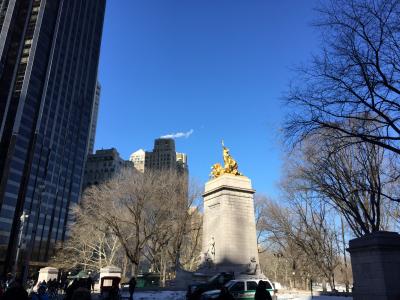 セントラルパークへ行き、帰りに地下鉄に乗る際に通りました。パークの角にコロンブスの黄金の像が建っている場所です。ここもNYへ来たな~と思える場所のひとつですが、鳩がたくさんいて糞も多いので写真だけ撮って通り過ぎました。