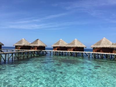 水上コテージは広すぎず最低限のものが揃っていて、海に入ればピッキピキの珊瑚が広がってます。珊瑚が元気過ぎて干潮の時には避けて泳ぐのが大変でした。