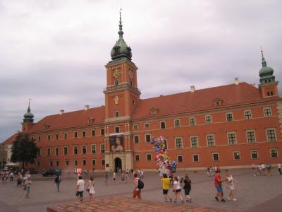 ワルシャワに着いた初日にワルシャワを少し観光致しました。具体的には、王宮広場を観光致しました。トラブルに遭い、ワルシャワ中央駅付近から歩いて行ったのですが、非常に時間がかかりました。バスを使えば良かったと思っております。写真は旧王宮です。王宮広場は、歩いて行くと、最初の広場です。遅い時間でしたが、広場は多くの人で賑わっていました。旧王宮は王宮広場に面した荘厳な建築物でした。