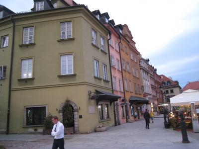 ワルシャワに着いた初日にワルシャワを少し観光致しました。具体的には、王宮広場を観光致しました。トラブルに遭い、ワルシャワ中央駅付近から歩いて行ったのですが、非常に時間がかかりました。バスを使えば良かったと思っております。写真は、王宮広場に面した建物です。王宮広場は、歩いて行くと、最初の広場です。遅い時間でしたが、広場は多くの人で賑わっていました。